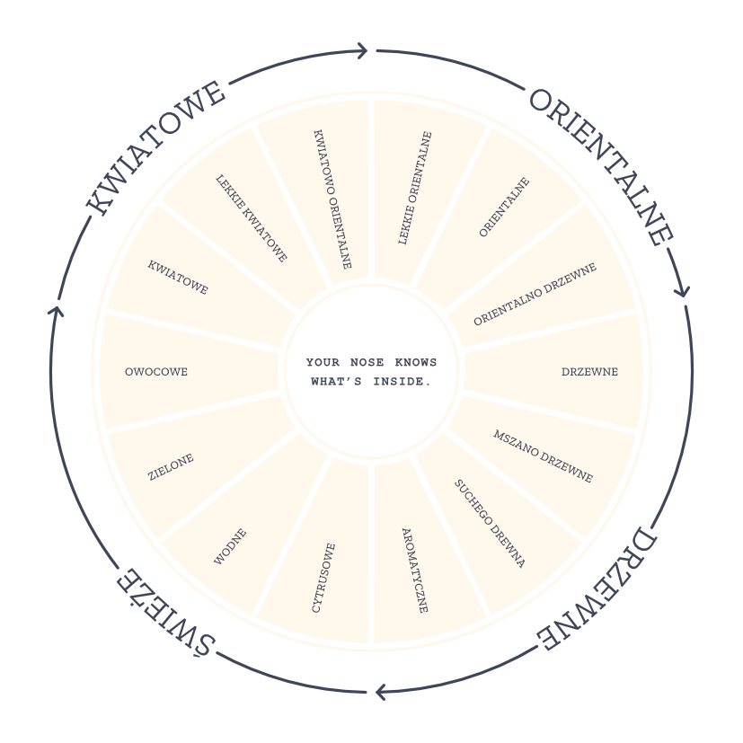 Posługując się Kołem Zapachów, możesz znaleźć wskazówkę, w którą stronę skierować swoje olfaktoryczne poszukiwania nowego ulubionego zapachu. Eksperymentuj z zapachami, które są bliskie Twoim ulubionym rodzinom zapachowym lub… zupełnie im dalekie. Nikt nie powiedział, że musisz gustować tylko w podobnych sobie perfumach. Kontynuuj lekturę tego przewodnika, a dowiesz się jeszcze więcej, jak odkryć swój nowy ulubiony zapach!